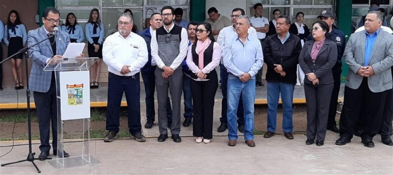 El Presidente del Municipio Miguel Francisco Javier Genesta Sesma, saludó a los estudiantes y anunció la inversión para la construcción del tejaban, además de arrancar los trabajos de aplicación de pintura para el edificio.