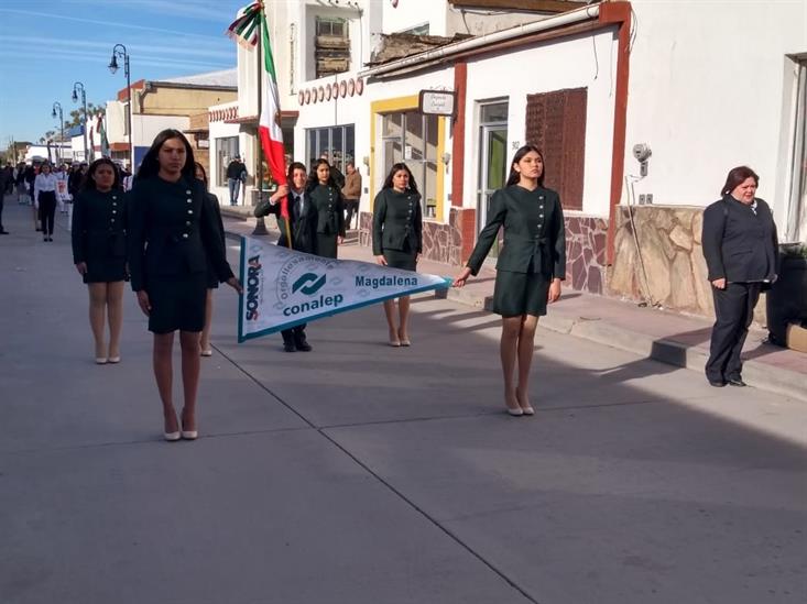 Participan alumnos de CONALEP MAGDALENA en evento del día de la bandera. Ante la presencia de autoridades Federales, Estatales y municipales escolta y banderín del plantel representaron esta importante Institución Educativa, en los asistentes del presidium se contó con la presencia del director MVZ Pedro Ortiz Alvarez, "ORGULLOSAMENTE CONALEP"
